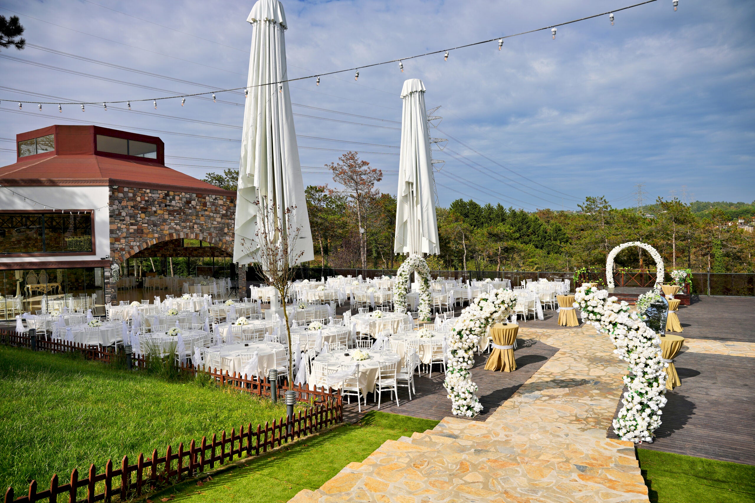 Bahçemiz, eşsiz konumuyla 1000 ila 1200 kişi arasındaki davetlilerinizi isterseniz yemekli bir ziyafet düzeninde veya keyifli bir kokteyl düzeninde ağırlamaya olanak sağlıyor. İstanbul Anadolu Yakası düğün davet salonları arasında şehir gürültüsünden uzakta a muhteşem bir manzarayı seyrederken misafirlerinizle birlikte doyasıya eğleneceğiniz saatler geçirebilirsiniz.